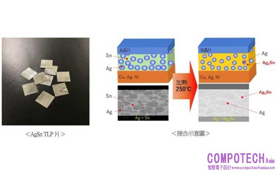 近年來,以EV、HV、產業基礎建設等用途為主,大電流型功率半導體需求日益提升。於此同時,在接合大型化的Si晶片方面,則需要能夠接合大面積且同時確保高可靠性的材料。本次宣布的「AgSn TLP片」最大可對應到20mm的半導體晶片接合。另外,可以在3.3MPa的低加壓下進行接合,也為改善半導體製造的良品率作出貢獻。