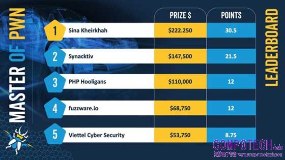 今年的競賽中總共發現49個未知、未公開及仍未通報的安全漏洞(零日漏洞),並且頒發了約100萬美元的獎金。