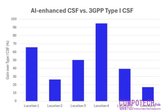 如以下長條圖所示,採用AI回饋可實現更高的傳輸量,每個位置的傳輸量增益從15% 至 95%。在實際商業系統中,AI增強CSF下所觀察到的傳輸量增益,將取決於多種因素。然而,這項概念驗證的結果以及多項模擬研究均顯示,透過AI增強實現的傳輸量能持續優於透過傳統方法實現的傳輸量。