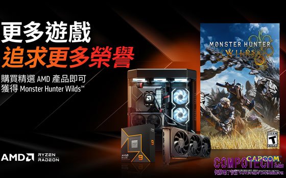AMD推出限時遊戲大禮包活動,即日起至2025年4月26日,凡購買指定AMD產品,即可兌換《魔物獵人荒野》遊戲序號。