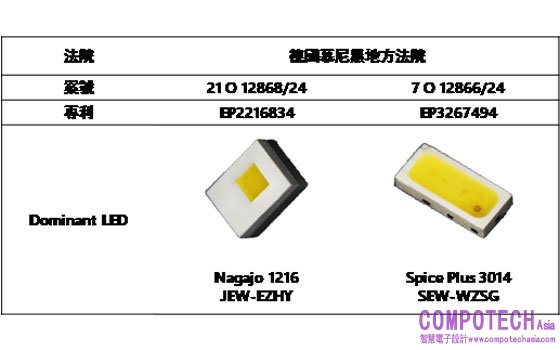 EP3267494 專利是關於在製造過程達到高可靠性和高效率的LED產品,體現汽車車內照明和背光源市場的重要技術,該市場尤其需要高可靠性的 LED 。