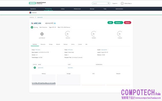 圖說:HPE VM Essentials直觀的虛擬機管理介面,展示單一虛擬機詳細資訊及運作狀態,提供使用者完整監控能力。