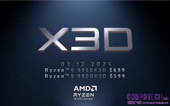 AMD宣布Ryzen 9 X3D系列處理器將於3月12日正式上市,Ryzen 9 9950X3D的建議售價為699美元,Ryzen 9 9900X3D則為599美元。