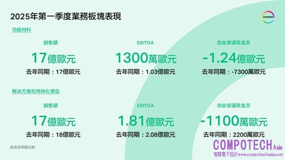 科思創執行長施樂文博士(Dr. Markus Steilemann)表示:「新財年的第一季度表明,在當前充滿挑戰的經濟環境中,我們依然朝著既定目標穩步前行——銷售額保持穩定,但盈利持續承壓。這增強了我們持續推進轉型的決心,並毫不動搖地繼續實施『永續未來』戰略。在這個動盪時期,猶豫不決者將錯失機遇,而穩健決策者將塑造未來。我們正以堅定的信念、高效的執行和清晰的願景將此付諸實踐。」