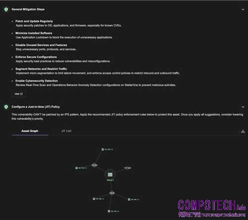 • (三) 補正:TXOne SageOne能自動解讀每項資產的情境,包含裝置類型、運作狀態,以及其對業務的衝擊性,並在不影響生產營運的情況下提供最佳防範途徑,例如完整修補、虛擬修補,或即時引導的網路微區隔。