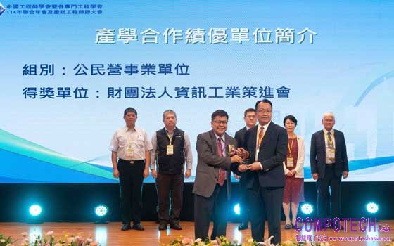 圖說:資策會今(6)日榮獲中國工程師學會114年度產學合作績優單位,由資策會軟體院院長蒙以亨(前排右)代表領獎。