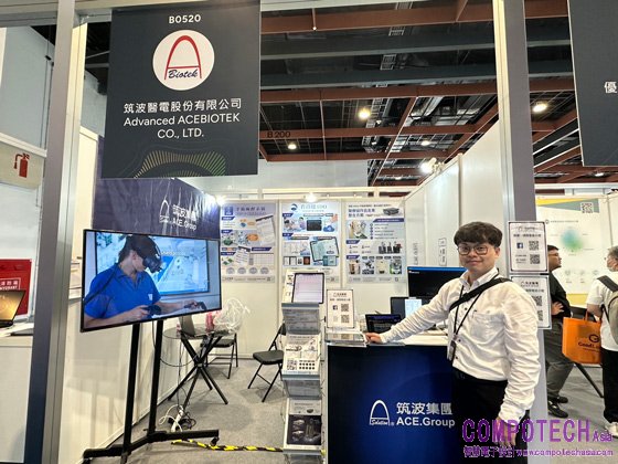 台灣新竹,2025年07月31日–筑波醫電 (ACE Biotek) 亮相亞洲規模最大AI應用產業博覽會—WAVE 2025「健康生活區」,展出智慧數位系統及智慧製造應用。分別為Spark手術麻醉系統、EP100眼科數位紀錄系統、UniiForm智慧手寫系統,以及UR協作型機器手臂與MiR無人自走車。本次展會設有現場體驗及成品展示,吸引眾多專業人士駐足。