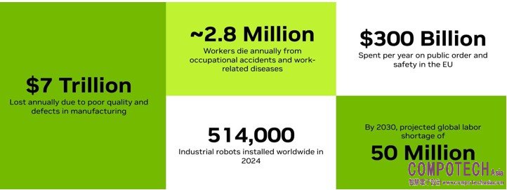NVIDIA 目前正利用基於物理 AI 的感知與推理技術,提升全球營運效能,合作的公司包括 Accenture、Avathon、Belden、DeepHow、Milestone Systems 與 Telit Cinterion。