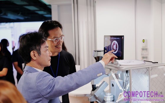 圖說:資策會董事長黃仲銘(左)體驗AI手沖咖啡,讓喝咖啡也可以很「科技」。