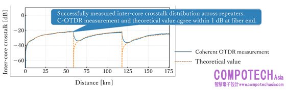 此次試驗結果顯示,這是全球首次證實 Coherent OTDR 成功在多芯光纖海纜系統中偵測故障,並測量光纖損耗分佈。此外,利用 Coherent OTDR 的測量結果,也可測量沿著光纖的核心間串擾分佈,包括中繼器部份,開創長距離核心間串擾可視化的新紀錄。