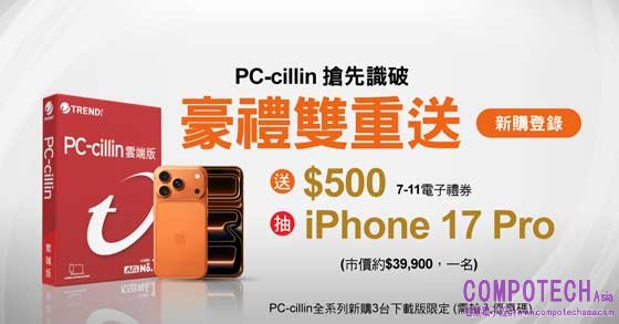 此外,為讓專業防護更貼近日常生活,即日起至12月31日凡新購PC-cillin全系列三台版(PC-cillin雲端版、PC-cillin AI防詐特偵組、PC-cillin Pro)並完成登錄,即可獲得價值500元的7-11電子禮券,並享有iPhone 17 Pro抽獎機會;針對續約三台版用戶,趨勢科技也推出最高59折續約價,同時免費送3個月及iPhone 17 Pro抽獎機會。趨勢科技期許將防毒、防詐的專業保護,真正融入每個人的生活中,讓在享受網路便利的同時,也能安心守護個人資訊安全,不再擔心被詐騙集團的「變裝把戲」所欺騙!
