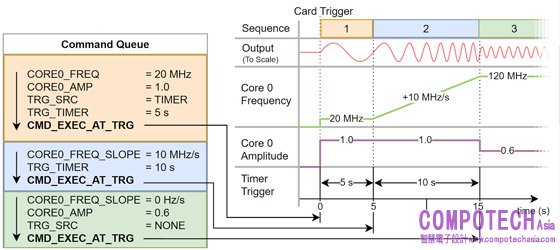 Spectrum Instrumentation 技術長 Oliver Rovini 指出:「DDS 升級的最大優勢在於效率。使用者無須傳輸大型波形檔案,僅需將精簡指令集存入機板記憶體,即可在 3.2 ns 時序精度下執行百萬筆命令。觸發可來自外部、內部計時器或軟體命令,輕鬆實現複雜脈波串、頻率掃描、AM / FM 調變與任意轉態波形。」