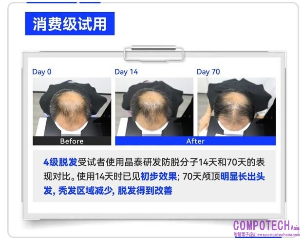晶泰科技AI 研發平台開發的小分子Remeanagen™ 和多肽 AquaKine™聯用配方改善頭皮四大指標,有效固發防掉發