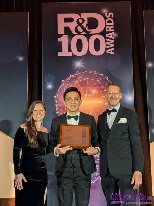 圖說:全球百大科技研發獎(R&D100 Awards)於11月20日在美國舉辦頒獎典禮,圖為資策會軟體院組長劉暐辰(中)代表資策會受獎。