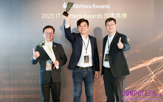 圖說:今(9)日資策會AI院憑藉「雄感動智慧銀髮健康照護應用解決方案」,拿下臺灣IT指標性大賽 IT Matters Awards「社會影響力獎」,研發團隊共同合影,圖左起為資策會AI院副主任林謙德、資策會AI院院長戴偉峻、資策會AI院主任邱璟明。