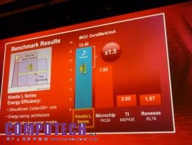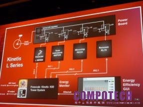 在此活動前不久,飛思卡爾發表業界首款採用ARM Cortex M0+處理器的MCU-Kinetis L系列,號稱所消耗的功率,大約只有現今任一8或16位元處理器的三分之一,但是效能卻提升了兩倍到四十倍之多。設計出來的MCU在極低功率執行模式(VLPR)時,僅耗用50 uA/MHz,而且可以迅速從低功率狀態下甦醒、處理資料、再繼續休眠,延長了應用的電池壽命。為證明所言不假,飛思卡爾在大會演講時段,對Kinetis L系列的能源效益特性與飛思卡爾競爭對手:包括Renesas(瑞薩),TI(德儀)與Microchip(微芯)的解決方案進行CoreMark評比分析,作一比較。