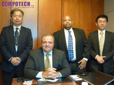 照片人物: 左二為ATMI資深副總裁暨微電子部總經理Christian F.Kramer,左三為ATMI客戶技術部副總裁Montray Leavy,左一右一分別是台灣ATMI大客戶處長王立坤與林仕萍