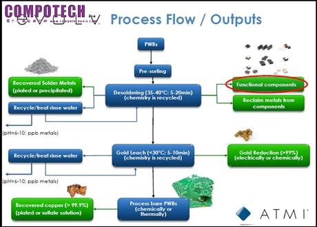 為開始應對大量和日益增加的電子廢棄物的挑戰,以及開始採用更清潔、更安全的方式從電子廢棄物元器件中回收金屬,ATMI公司開發了名為eVOLVTM的新型技術,它是基於環保化學和綠色工程的方法,可以從廢舊電路板或印刷線路板(PWBs)中回收有價值材料的一種安全、快捷和有效的方式。