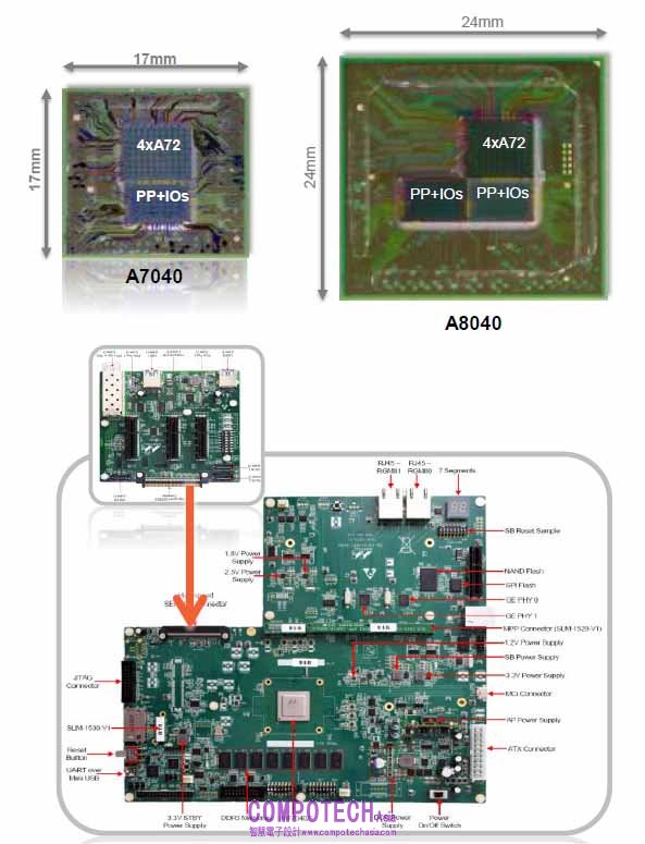 Marvell ARMADA 7000(88F70x0)與Marvell® ARMADA® 8000(88F80x0)均搭載了雙核及四核的ARM Cortex-A72處理器,提供高集成度與高效率以及優異的性能和低功耗的特點。全新系列強化了Marvell嵌入式處理器的領導地位,同時拓展了Marvell ARMADA產品套件。兩款產品系列均已開始提供樣片給全球領先客戶開始實際設計。