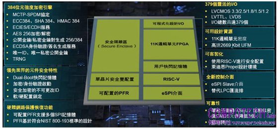 Mach FPGA系列產品可以簡化並加速這些技術的實現,保護伺服器OEM廠商平台不受網路攻擊和IP盜竊的侵害。萊迪思表示,具備安全功能和效能的伺服器平台,與惡意入侵者試圖利用韌體漏洞入侵,這兩者之間的鬥爭從未停歇。保護系統不僅需要即時的硬體可信任根,還須支援更強大的加密演算法,以及更新、更可靠的資料安全協定。此外,Mach-NX性能較前代MachXO系列元件有大幅提升,除了支援各種安全平台外,提供eSPI及硬體加速模塊更是它的一大特色。