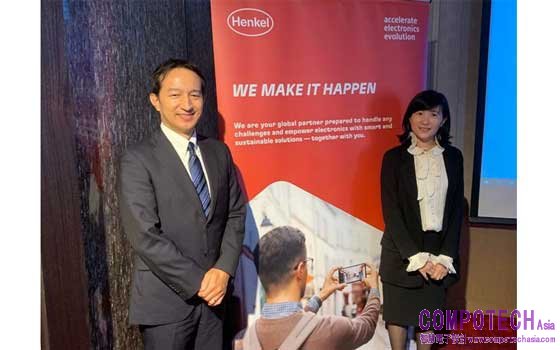 圖片人物由左至右為; 漢高黏著劑電子事業部日本暨台灣負責人Kenji Kuriyama、漢高黏著劑電子事業部台灣區業務總監李瓊明