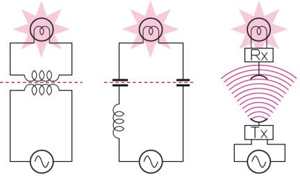 ². 電磁誘導(electromagnetic induction)。此乃研究開發歷史最為長久的方式,在電動牙刷、刮鬍刀、無線電話產品線上;早已被消費者所認同與接受。業界的標準化組織WPC(Wireless Power Consortium),就是以此方式制定了標準規範。