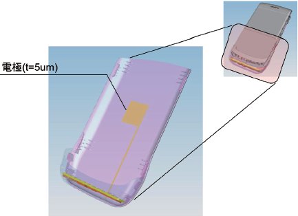 特徵之二:電極的形狀、材質制約較少。電極薄型化。