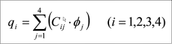 物理條件(電極形狀、誘電特性)所決定的容量係數Cij,作為四導體間相互結合的表示。若是物理條件相當明確,容量係數可以透過數值解析(比如說,有限要素法)來計算。傳送媒介乃是準靜電場,電荷分布(qi)與物理條件,決定了電場分布以及各個導體的電位分布(Φi)。
