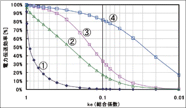 明顯地,可以看出在結合係數較低的場合,各個電路的構成非常不同。而且,送電回路追加了L1、受電回路追加了L2的構成其效果最為優良。當結合係數較高的場合,提高Q Factor(Q值)是高效率化的要點。即使結合係數較低,提高Q Factor也可以彌補效率。