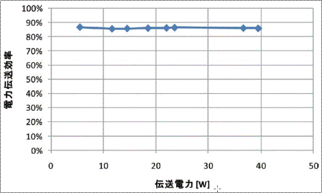 還有一個問題,利用這個原理,電力傳送效率以及傳送電力的關係又是如何呢?依據村田製作所試做的實驗機器顯示了下圖的結果: