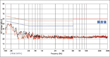 由於這個技術乃是利用非放射電場,故不會有放射電磁波;而是要去留意裝置近旁的電場洩漏問題。因此,EMI的測量專注於”雜訊端子電壓(傳導放射)”。傳送電力10W、傳送頻率200 ~ 300KHz的評估測試結果如下圖,結果合乎CISPR22 Class B的雜訊規格。由於電場可以利用靜電遮蔽,若是有電場洩漏的疑慮,可以採用薄導電膜的對策。
