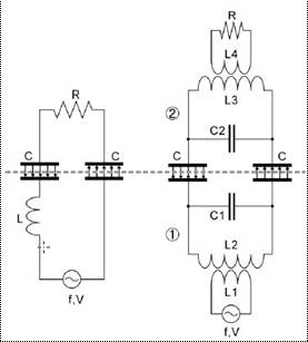 先來看看串接共振以及並列共振的電場耦合方式傳送概念圖。並說明何以會著重於並列共振類型。