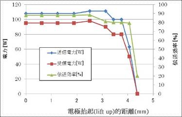 圖:電極往上抬起時的傳送電力‧傳送效率。