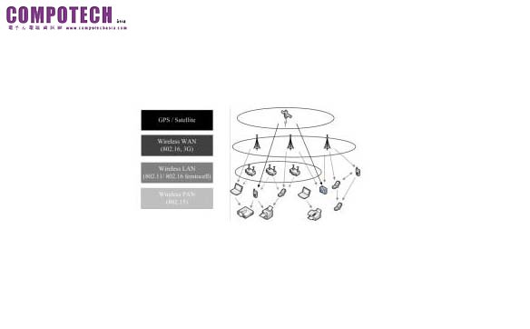 圖1:無線網路通訊定位技術種類 (資料來源:IEEE 802.16)