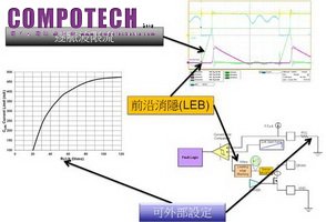 NCP1032的限流設定包括前沿消隱電路,功率管的峰值電流用外部電阻進行設定,圖3左邊是外部電阻設定電流值曲線。