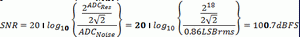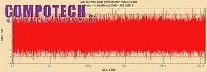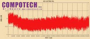 正如同使用AD 7960的狀況一樣,圖4中顯示出在轉換功能上並沒有明顯的偏移或是任何特定的不連續性,從而展現出系統的能力。從圖6的雜訊圖表中更深入研究時,SNR可以利用如下的公式1導出。