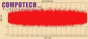 線性度以及動態性能對於高解析度精密轉換器而言是兩項重要的測試需求。這些測試是使用工具套件針對AD 7960進行分析與顯示後,繪製圖表如圖4與圖5。這些參數也可以在AD 7960技術手冊中找到。