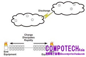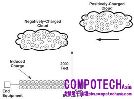 圖1:帶有異極電荷的雲層飄過時,產生交叉衝擊