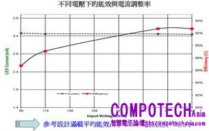 圖3:安森美半導體150 W路燈參考設計的能效及穩流精度。