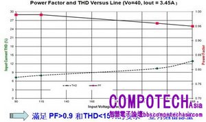 圖4:安森美半導體150 W路燈參考設計的功率因數及THD符合設計目標