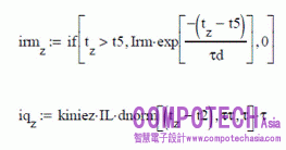 在電流拖尾的運算式中,採用了Mathcad®函數dnorm(a,b,c),而它需要2個時間常數。拖尾的初始振幅由參數kiniez定義。資料手冊中沒有這些參數,必須用IL和Rgon/Rgoff可控的實驗電路測得。