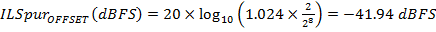 現在假設我們有一個雙通道交錯式元件(在此範例中為AD 9286)當中兩組8位元ADC之間的典型偏移不匹配。此大約為額定值滿量程的0.4%。此所代表的編碼數量應該是28的0.4%,亦即1.024。將此代入公式1b之後,我們獲得如下: