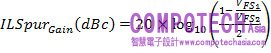 現在,讓我們假設我們有一個在雙通道元件中介於兩組ADC之間的典型時序不匹配。其典型值應該大約是500 fs。將此代入公式3a當中,我們會獲得如公式3b的下列結果: