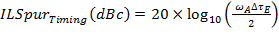 檢視下列公式3a當中的計算,並且檢查因為時序不匹配所導致的突波計算。我們會看到突波位準是操作頻率(ωA)以及時序不匹配(ΔτE)的乘積。