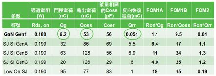 基於同一導通電阻等級,第一代600 V矽基GaN(GaN-on-Si)元件已比高壓矽MOSFET提供好4倍以上的閘極電荷、更好的輸出電荷、差不多的輸出電容和好20倍以上的反向恢復電荷,並將有待繼續改進,未來GaN的優勢將會越來越明顯。