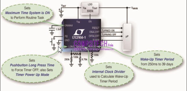 圖 :具按鈕控制的外部可調喚醒計時器 LTC2956