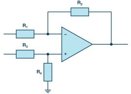 在各種應用領域,採用類比技術時都需要使用差分放大器電路,如圖 1 所示 。例如測量技術,根據其應用的不同,可能需要極高的測量精度。為了達到此一精度,盡可能地減少典型誤差源 (例如失調和增益誤差,以及雜訊、容差和漂移) 是非常重要的。有鑑於此,高精度運算放大器的使用是需要的。放大器電路的外部元件選擇也同等重要,尤其是電阻,它們應該具有匹配的比值,而不能任意選擇。