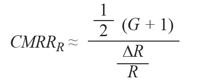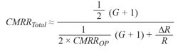 對於圖 1 所示的差分放大器電路,CMRR 取決於放大器本身以及外部連接的電阻。對於後者,取決於電阻的 CMRR 在本文下述部分以下標“R”表示,並利用下式計算: