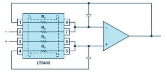 實際使用中傳統電阻的阻值並不恒定。它們會受機械負載和溫度的影響。根據需求的不同,可以使用具有不同容差的電阻或匹配電阻對 (或網路),其大部分使用薄膜技術製造並具有精確的比值穩定性。利用這些匹配的電阻網路 (如 LT5400 四通道匹配電阻網路),可以大幅提高放大器電路的整體 CMRR。LT5400 電阻網路在整個溫度範圍內具有出色的匹配性,結合差分放大器電路使用則匹配性更佳,因而可確保 CMRR 比分立電阻提高兩倍。