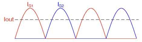 使用二極體整流器時,如圖1所示,全部輸出電流流過輸出二極體。對於低電壓或高輸出電流應用,這些二極體整流器中存在顯著的效率損失和熱應力。